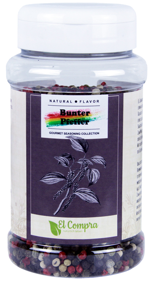 El Compras bunter Pfeffer mit rassiger Schärfe und einem besonders zauberhaften Würzeffekt. Gibt Steaks, Gulasch, Suppen, Soßen, allen Braten und Eintopfgerichten eine delikate Note. Das ideale Gewürz für alle Salate, Salatsoßen und Käse. Zum Würzen von Steaks, Fisch, Geflügel, Salaten und speisen den Sie eine würzige Schärfe geben möchten. Mit dieser bunten Pfeffermischung trifft El Compra zugleich die Geschmacksnerven und die Herzen seiner Kunden.